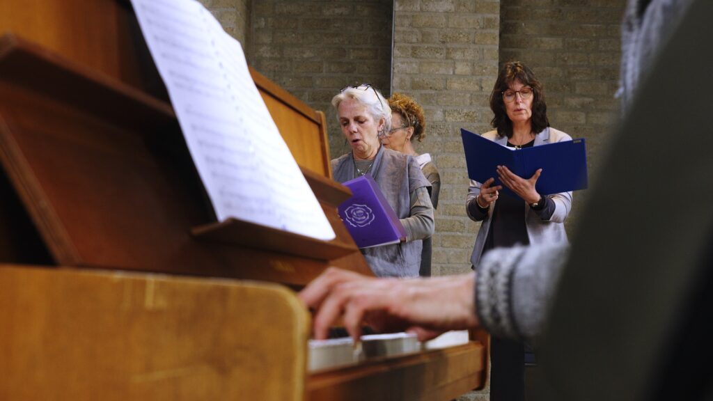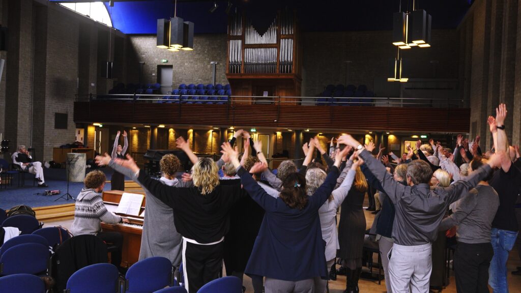 Op de repetitiedag in de video zag het er al zo mooi uit, dat we het jammer vonden dat we het zelf alleen van de achterkant zien omdat we zingen.